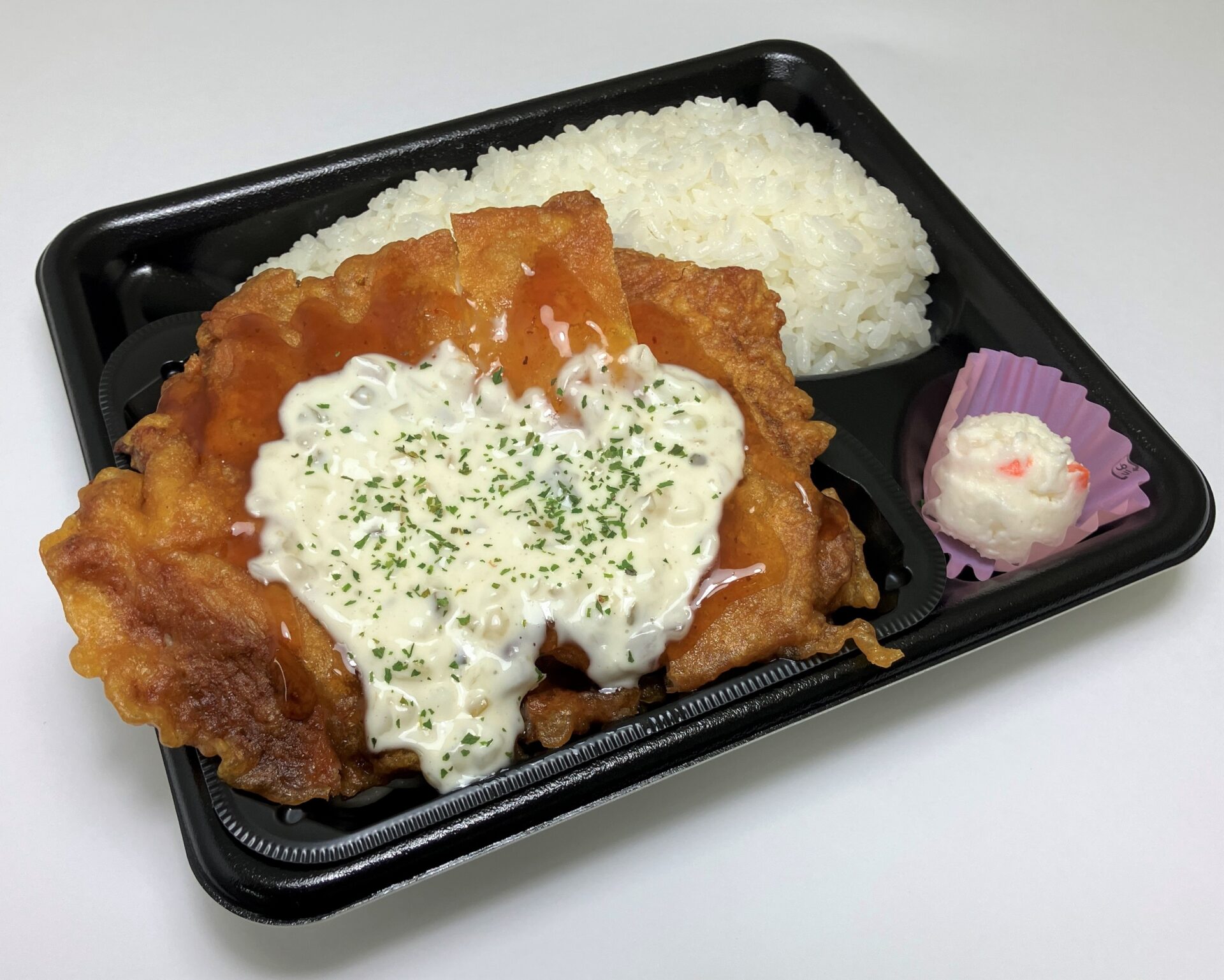 ぶちタル盛りチキン南蛮弁当 大きな鶏もも肉を1枚まるごとジューシーに揚げて甘酸っぱいたれで食べごたえ満点の南蛮にしました。 たっぷりと上掛けした特製タルタルソースも好評な不動の人気NO.1ポプ弁です。 まいちゃんのオススメポイント 食べやすいカットになって嬉しいー! 商品名 ぶちタル盛りチキン南蛮弁当 価格 754円(税込) 前ページへ戻る