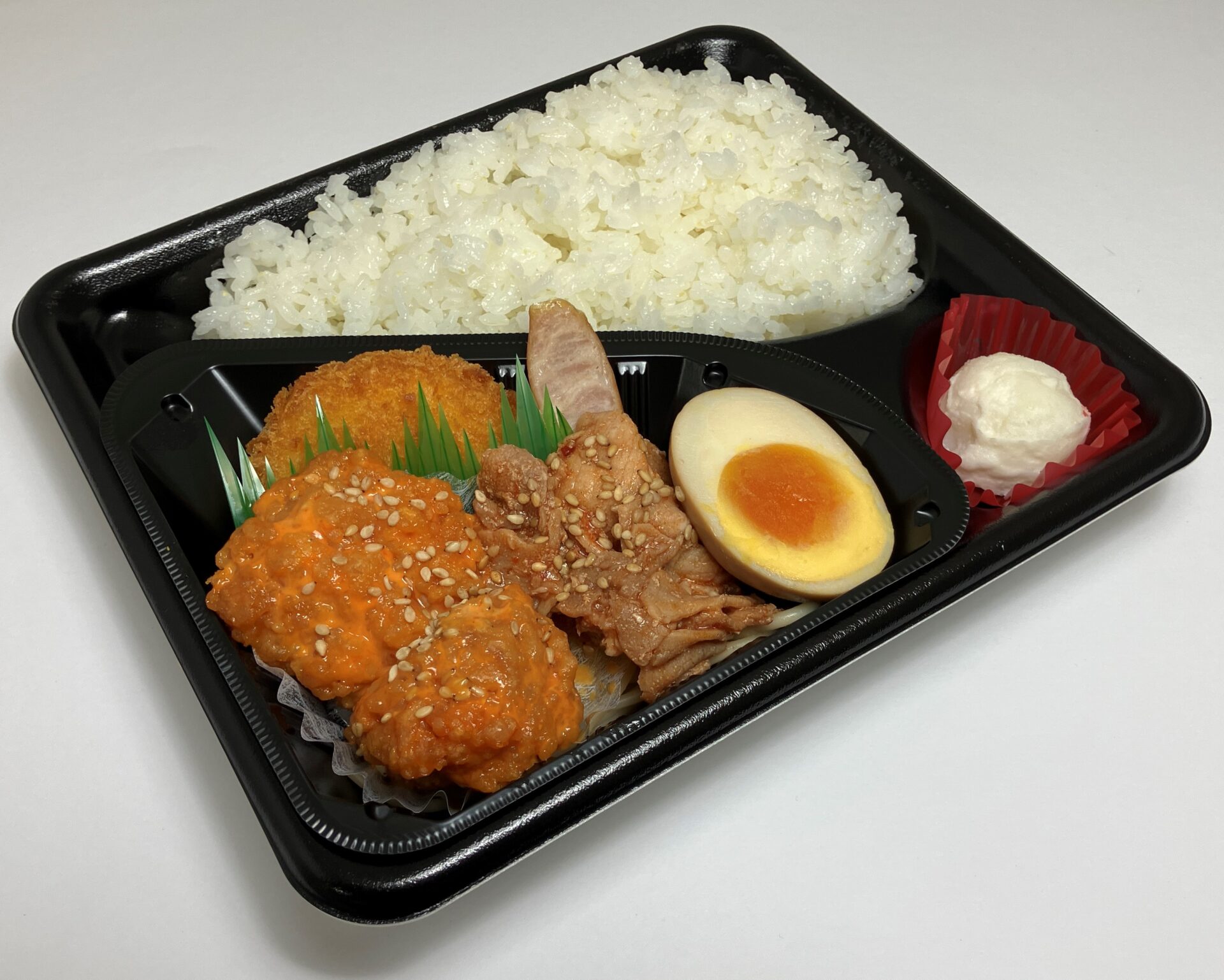 月替りポプ弁(鶏チリマヨ) 特製チリマヨソースをからめた鶏むね唐揚げをメインに、豚の焼肉風、コロッケ、ウインナー、味付玉子、ポテトサラダを盛り込みました。 一度に様々なおかずをお楽しみ頂けるボリューム満点なお弁当です。 まいちゃんのオススメポイント 色んなおかずが入ってお得~♪ 商品名 月替りポプ弁(鶏チリマヨ) 価格 680円(税込) 前ページへ戻る