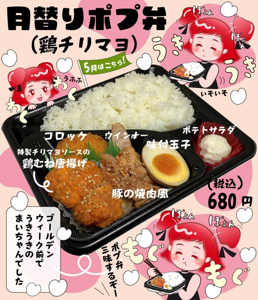 月替りポプ弁(鶏チリマヨ)よろしくお願いいたします。